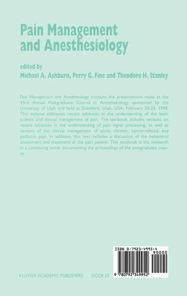 Pain Management and Anesthesiology contains the presentations made at the 43rd Annual Postgraduate Course in Anesthesiology sponsored by the University of Utah and held at Snowbird, Utah, USA, February 20-24, 1998.