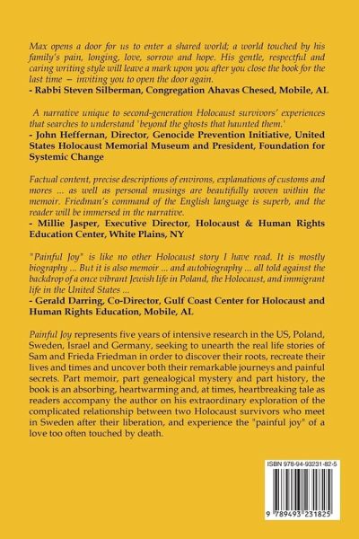 Max J. Friedman realized early in life that the world he lived in was very different from what most others his age would ever experience. He was born in Sweden to Sam and Frieda, Polish-Jewish parents who met and married there after their liberation from Bergen-Belsen and then emigrated to the US in 1952. Max and his sister learned very little from their parents about their parents' lives before WWII or what they had gone through during the Holocaust, and much of what they did learn from them, it would turn out, did not really happen. What was real were their parents' years of ghettos, slave labor and concentration camps like Auschwitz and Bergen-Belsen, which Sam and Frieda endured while suffering the horrific loss of their families: spouses, parents, siblings and children. Max's family experienced the after-effects that flow from parents who have survived such horrors. When it came time to care for their elderly survivor parents, Max and his sister well understood that they too would have to become survivors. This book is the story of this family's journey of discovery, transformation and acceptance. It was a long time coming. After getting a BA from Columbia College and a Master's of Journalism from UC Berkeley, Max spent the next five decades first as a journalist and then in related writing fields, including public television, leading a communications group for a major pharmaceutical company, and operating his own editorial consultancy. He married and has twin sons and two grandchildren. After spending a career discovering and then sharing the stories of so many others, and more recently completing the memoirs of two complex personalities, he found himself reexamining his own past, spurred by a question from his grandson. The result is Painful Joy, an effort to finally uncover the truth of his parents' extraordinary journey of survival and the effects it had on others. Traveling to Poland, Germany, Israel and Sweden, he sought to help restore his parents' humanity by uncovering who they really were, apart from damaged survivors: where they came from, the lives they once led, their lost hopes and dreams. He learned how all that had unraveled, leaving dual legacies of pain and resilience for future generations. This retelling of what he discovered and what remained hidden was more complicated than he could have imagined. It is a story that goes beyond his own family to explore larger questions about the nature of survival, the tricks our memories can play on us, how hate can destroy and how love can restore. In the process he transforms Sam and Frieda, who start out as strangers, into people who merit our attention, empathy and respect.