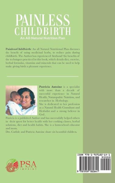 Painless Childbirth: An all Natural Nutritional Plan discusses the benefit of using medicinal herbs, to reduce pain during childbirth. The Author has experienced firsthand 'the benefits of the techniques practiced in this book, which details diet, exercise, herbal formulas, vitamins and minerals that can be used to help make giving birth a pleasant experience.
