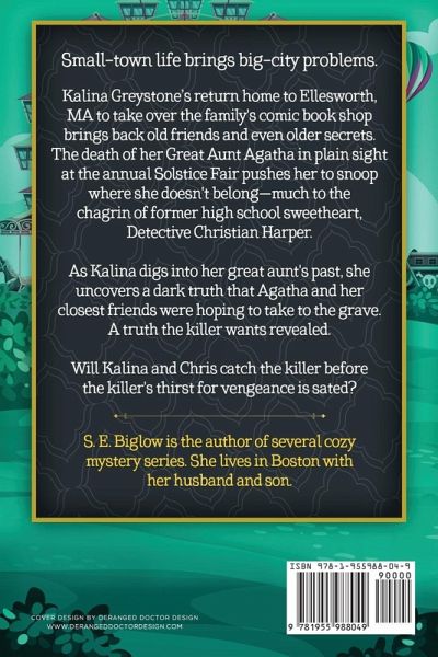 Small-town life brings big-city problems. Kalina Greystone's return home to Ellesworth, MA to take over the family's comic book shop brings back old friends and even older secrets. The death of her Great Aunt Agatha in plain sight at the annual Solstice Fair pushes her to snoop where she doesn't belong--much to the chagrin of former high school sweetheart, Detective Christian Harper. As Kalina digs into her great aunt's past, she uncovers a dark truth that Agatha and her closest friends were hoping to take to the grave. A truth the killer wants revealed. Will Kalina and Chris catch the killer before the killer's thirst for vengeance is sated? PAINS AND PENALTIES is the first book in this quirky, fast-paced cozy mystery series where you'll find a dash of nerdy fun mixed with your new favorite amateur sleuth. ¿Get PAINS AND PENALTIES to start unraveling the mystery today!