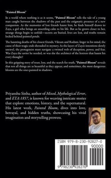 "Painted Bloom" In a world where nothing is as it seems, "Painted Bloom" tells the tale of a young man caught between the shadows of the past and the enigmatic presence of a new companion. As the memories of lost friends haunt him, he finds himself drawn to Zaya, a girl who brings an unsettling calm to his life. But as he grows closer to her, strange things begin to unfold-secrets are buried, lives are lost, and truths remain locked behind painted petals. The haunting deaths of his closest friends, Vikram and Rashmi, linger in his mind, the cause of their tragic ends shrouded in mystery. As the layers of Zaya's intentions slowly unravel, the protagonist must navigate a twisted web of deception, power, and fear. Was Zaya the savior he needed, or was she the architect of the horrors that haunt his every thought? In this gripping story of trust, loss, and the search for truth, "Painted Bloom" reveals that not all things are as beautiful as they appear, and sometimes, the most dangerous blooms are the ones painted in shadows.