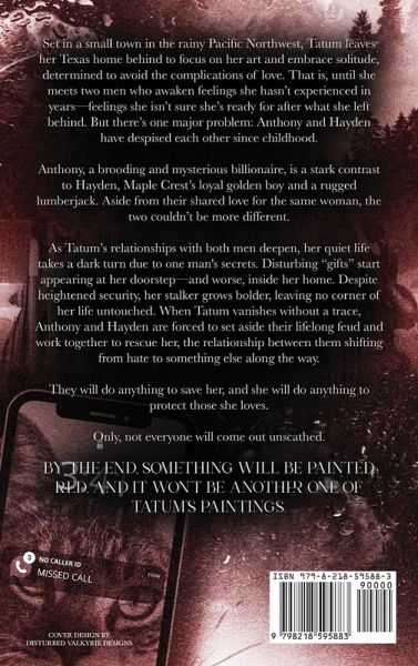 Set in a small town in the rainy Pacific Northwest, Tatum leaves her Texas home behind to focus on her art and embrace solitude, determined to avoid the complications of love. That is, until she meets two men who awaken feelings she hasn't experienced in years-feelings she isn't sure she's ready for after what she left behind. But there's one major problem: Anthony and Hayden have despised each other since childhood. Anthony, a brooding and mysterious billionaire, is a stark contrast to Hayden, Maple Crest's loyal golden boy and a rugged lumberjack. Aside from their shared love for the same woman, the two couldn't be more different. As Tatum's relationships with both men deepen, her quiet life takes a dark turn due to one man's secrets. Disturbing "gifts" start appearing at her doorstep-and worse, inside her home. Despite heightened security, her stalker grows bolder, leaving no corner of her life untouched. When Tatum vanishes without a trace, Anthony and Hayden are forced to set aside their lifelong feud and work together to rescue her, the relationship between them shifting from hate to something else along the way. They will do anything to save her, and she will do anything to protect those she loves. Only, not everyone will come out unscathed. By the end, something will be painted red, and it won't be another one of Tatum's paintings. Tropes: Set in the Pacific Northwest, instalove, why-choose turned throuple relationship, childhood enemies-to-lovers, one bed, grumpy x sunshine, opposites attract, forced proximity, strong FMC, hurt/comfort (lots of it) Content Warnings: Explicit language, mature sexual content, talk of loss of a parent through illness, stalking, blood and gore depiction, talk of domestic violence, murder, abduction, gassing, graphic depiction of a cat having a seizure, mention of animal death, anxiety, depression *Painted Red is a thriller / romance that contains scenes and themes that aren't suitable for anyone under 18 years of age*