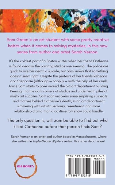 Sam Green is an art student with some pretty creative habits when it comes to solving mysteries, in this new series from author and artist Sarah Vernon. It's the coldest part of a Boston winter when her friend Catherine is found dead in the painting studios one evening. The police are quick to rule her death a suicide, but Sam knows that something doesn't seem right. Despite the protests of her friends Rebecca and Stephanie (although - happily - with the help of her crush Arun), Sam starts to poke around the old art department building. Peering into the dark corners of studios and underneath piles of musty art supplies, Sam soon uncovers some surprising suspects and motives behind Catherine's death, in an art department simmering with artistic jealousy, resentment, and more relationship drama than a daytime talk show could handle. The only question is, will Sam be able to find out who killed Catherine before that person finds Sam?