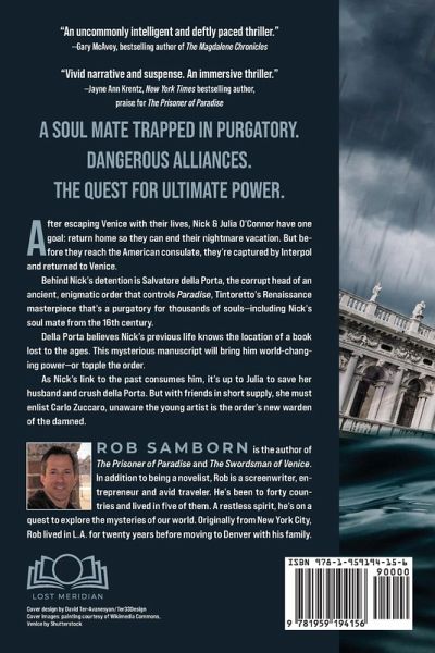 A soul mate trapped in purgatory. Dangerous alliances. The quest for ultimate power. FINALIST - AMERICAN WRITING AWARDS BOOKSHELF AWARD NOMINEE - THE WRITERS LOUNGE After escaping Venice with their lives, Nick & Julia O'Connor have one goal: return home so they can end their nightmare vacation. But before they reach the American consulate, they're captured by Interpol and returned to Venice. Behind Nick's detention is Salvatore della Porta, the corrupt head of an ancient, enigmatic order that controls Paradise, Tintoretto's Renaissance masterpiece that's also a purgatory for thousands of souls-including Nick's soul mate from the 16th century. Della Porta believes Nick's previous life knows the location of a book lost to the ages. This mysterious manuscript will bring him world-changing power-or topple the order. As Nick's link to the past consumes him, it's up to Julia to save her husband and crush della Porta. But with friends in short supply, she must enlist Carlo Zuccaro, unaware the young artist is the order's new Painter and warden of the damned. "...a genre-bending masterwork." - David L. Robbins, New York Times bestselling author of The Devil's Waters and Isaac's Beacon "You will want to read Painter of the Damned. Period!" - Yasmin Angoe, bestselling author of Her Name is Knight "...an uncommonly intelligent, shrewd and deftly paced thriller..." - Gary McAvoy, bestselling author of The Magdalene Chronicles "A truly unique thriller blending elements of mystery, suspense and loads of action, Painter of the Damned takes readers on a journey unlike any other." - Andrew Clawson, author of The Arthurian Relic and the Harry Fox series "Impossible to predict and equally impossible to put down..." - Jane Thornley, bestselling author of The Agency of the Ancient Lost & Found historical mystery thriller series