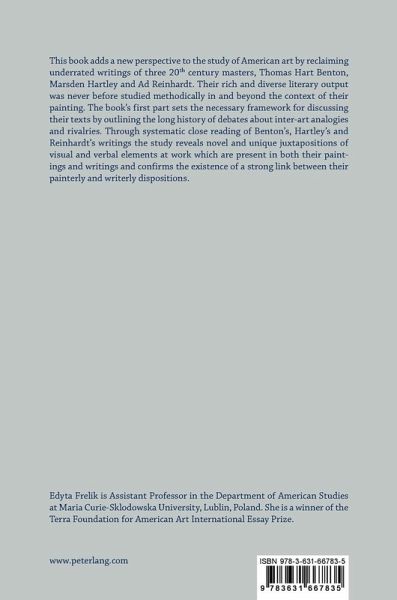 This book adds a new perspective to the study of American art by reclaiming underrated writings of three 20th-century masters, Thomas Hart Benton, Marsden Hartley and Ad Reinhardt. Their rich and diverse literary output was never before studied methodically in and beyond the context of their painting. The book's first part sets the necessary framework for discussing their texts by outlining the long history of debates about inter-art analogies and rivalries. Through systematic close reading of Benton's, Hartley's and Reinhardt's writings the study reveals novel and unique juxtapositions of visual and verbal elements at work which are present in both their paintings and writings and confirms the existence of a strong link between their painterly and writerly dispositions.