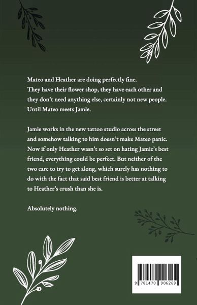 Mateo and Heather are doing perfectly fine. They have their flower shop, they have each other and they don't need anything else, certainly not new people. Until Mateo meets Jamie. Jamie works in the new tattoo studio across the street and somehow talking to him doesn't make Mateo panic. Now if only Heather wasn't so set on hating Jamie's best friend, everything could be perfect. But neither of the two care to get along which surely has nothing to do with the fact that said best friend is better at talking to Heather's crush than she is. Absolutely nothing.
