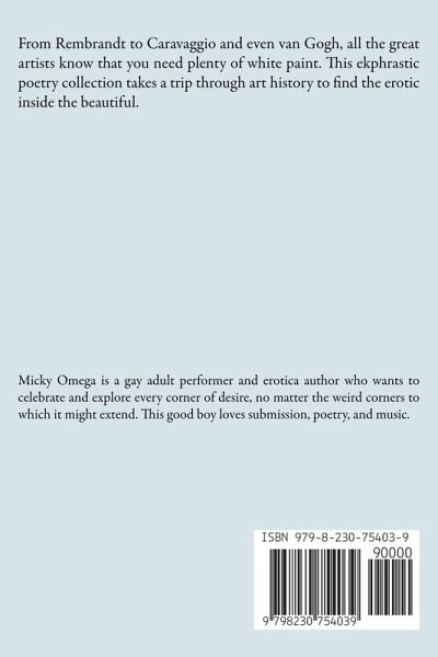 From Rembrandt to Caravaggio and even van Gogh, all the great artists know that you need plenty of white paint. This ekphrastic poetry collection takes a trip through art history to find the erotic inside the beautiful.