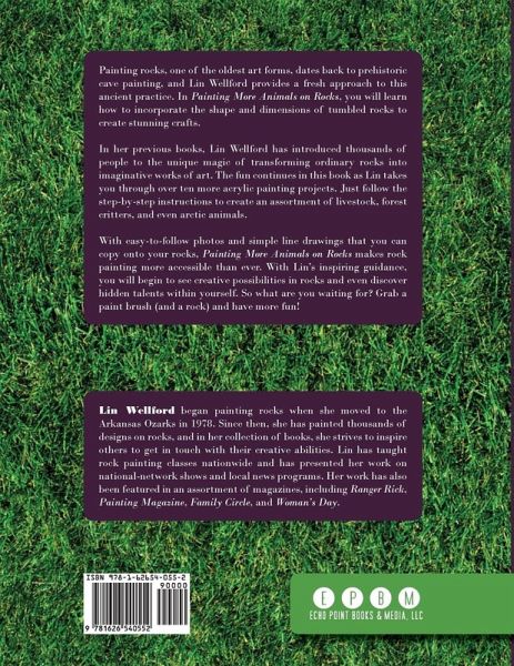 Painting rocks, one of the oldest art forms, dates back to prehistoric cave painting, and Lin Wellford provides a fresh approach to this ancient practice. In Painting More Animals on Rocks, you will learn how to incorporate the shape and dimensions of tumbled rocks to create stunning crafts. In her previous books, Lin Wellford has introduced thousands of people to the unique magic of transforming ordinary rocks into imaginative works of art. The fun continues in this book as Lin takes you through over ten more acrylic painting projects. Just follow the step-by-step instructions to create an assortment of livestock, forest critters, and even arctic animals. With easy-to-follow photos and simple line drawings that you can copy onto your rocks, Painting More Animals on Rocks makes rock painting more accessible than ever. With Lin's inspiring guidance, you will begin to see creative possibilities in rocks and even discover hidden talents within yourself. So what are you waiting for? Grab a paint brush (and a rock) and have more fun! Lin Wellford began painting rocks when she moved to the Arkansas Ozarks in 1978. Since then, she has painted thousands of designs on rocks, and in her collection of books, she strives to inspire others to get in touch with their creative abilities. Lin has taught rock painting classes nationwide and has presented her work on national-network shows and local news programs. Her work has also been featured in an assortment of magazines, including Ranger Rick, Painting Magazine, Family Circle, and Woman's Day.