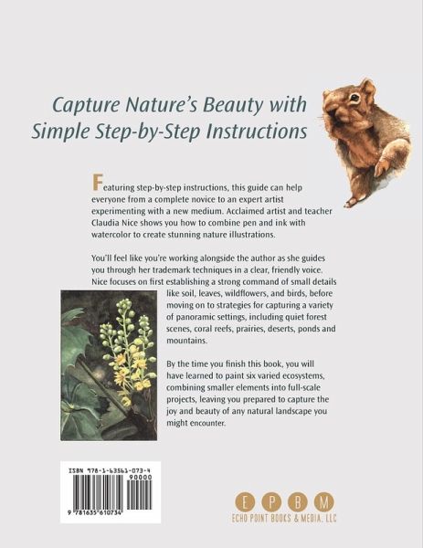 Featuring step-by-step instructions, this guide can help everyone from a complete novice to an expert artist experimenting with a new medium. Acclaimed artist and teacher Claudia Nice shows you how to combine pen and ink with watercolor to create stunning nature illustrations. You'll feel like you're working alongside the author as she guides you through her trademark techniques in a clear, friendly voice. Nice focuses on first establishing a strong command of small details like soil, leaves, wildflowers and birds, before moving on to strategies for capturing a variety of panoramic settings,…mehr