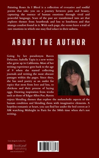 "Painting Roses As I Bleed" is a collection of evocative and soulful poems that take you on a journey between pain and beauty, capturing the essence of human emotions through vivid and powerful language. Scars of the past are transformed into art that explores themes from heartbreak and loss to loneliness and that strange comfort found in it. With each page, the verses leave a trail of raw emotions in which one may find solace in their sadness.