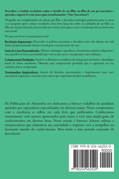 Descubra a verdade reveladora sobre o desafio de ser filho ou filha de um pai narcisista e aprenda a superá-lo com nosso guia transformador: "Pais Narcisistas"! Mergulhe nas complexidades da relação pai-filho e descubra estratégias poderosas para se curar e se recuperar após o abuso encoberto. Este livro lança luz sobre as realidades de ser filho ou filha de um pai narcisista, fornecendo um roteiro claro para a cura e restauração do seu bem-estar emocional. Por que este livro é essencial para você? Revelação Impactante: Desvende os padrões narcisistas e descubra como eles afetam sua vida diária, proporcionando clareza crucial para o seu processo de cura. Guia de Cura Personalizado: Oferece estratégias específicas e ferramentas práticas adaptadas à sua experiência única, permitindo que você avance para a recuperação com confiança. Compreensão Profunda: Explore as dinâmicas complexas da relação pai-narcisista e identifique sinais de abuso encoberto. Obtenha uma compreensão profunda que o capacitará em seu caminho para a recuperação. Testemunhos Inspiradores: Através de histórias emocionantes e depoimentos reais, você encontrará inspiração e conexão com outros que superaram desafios semelhantes.