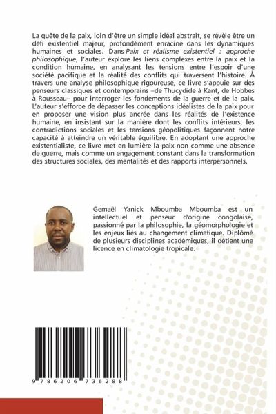 La quête de la paix, loin d'être un simple idéal abstrait, se révèle être un défi existentiel majeur, profondément enraciné dans les dynamiques humaines et sociales. Dans Paix et réalisme existentiel : approche philosophique, l'auteur explore les liens complexes entre la paix et la condition humaine, en analysant les tensions entre l'espoir d'une société pacifique et la réalité des conflits qui traversent l'histoire. À travers une analyse philosophique rigoureuse, ce livre s'appuie sur des penseurs classiques et contemporains -de Thucydide à Kant, de Hobbes à Rousseau- pour interroger les fondements de la guerre et de la paix. L'auteur s'efforce de dépasser les conceptions idéalistes de la paix pour en proposer une vision plus ancrée dans les réalités de l'existence humaine, en insistant sur la manière dont les conflits intérieurs, les contradictions sociales et les tensions géopolitiques façonnent notre capacité à atteindre un véritable équilibre. En adoptant une approche existentialiste, ce livre met en lumière la paix non comme une absence de guerre, mais comme un engagement constant dans la transformation des structures sociales, des mentalités et des rapports interpersonnels.