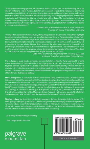 "Provides innovative engagement with issues of politics, culture, and society informing Pakistani identity within and outside Pakistan. Pakistan can no longer be studied and evaluated as a contained national territorial identity; it is produced in multiple spaces - public and private, within and outside the national state. Each production has its unique history and ramifying implications and multiple imaginations of Pakistani identity are evolving and taking shape. The confrontation of religious leaders or the 'fighting mullhas' with the Pakistan state alongside accommodations of Islamic welfare organizations in the UK bring to light the arduous task of developing a Pakistani identity that is Islamic and modern simultaneously." - Yasmin Saikia, Hardt-Nickachos Chair in Peace Studies and Professor of History, Arizona State University "An important collection of intellectually stimulating, research-driven works. The authors highlight the dialectic relationship that exists between Pakistanis and those of Pakistani origin and bring forth the histories, local socio-political dynamics, and transnational connections that play a role in shaping their lives and informing their actions. Examining themes that are both common and relevant, the work is grounded in rigorous scholarship and deftly sidesteps the all too common trap of essentialism by presenting nuanced and complex accounts that are also highly readable. This compilation is a must read for anyone interested in acquiring athree dimensional understanding of the lives of Pakistanis and the Diaspora, and the multiple intersecting factors that inform them." - Sadaf Ahmad, author of Transforming Faith: The Story of Al-Huda and Islamic Revivalism Among Urban Pakistani Women