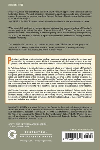 "Mansoor Ahmed's Pakistan's Pathway to the Bomb reveals a new history of Pakistan's nuclear weapons program and the bureaucratic competition that shaped it from its inception in 1956 until the 1998 nuclear tests and beyond. While the enduring security dilemma from India was the chief driver for the country's quest for the bomb, heated domestic rivalries within the country's technocratic community influenced the direction and growth of the nuclear program in equal measure. Ahmed offers a revisionist assessment of the role of Dr. A. Q. Khan, the giant of Pakistan's nuclear program. He reveals the competition between Khan Research Laboratories and the Pakistan Atomic Energy Commission, how A. Q. Khan was able to build a cult of personality that inflated his role in the public mind, and how Khan was able to build a fiefdom largely outside of state control that proliferated nuclear technology abroad. Drawing on elite interviews and previously untapped primary-source documents, this book sheds light on the process by which Pakistan became a nuclear power"--