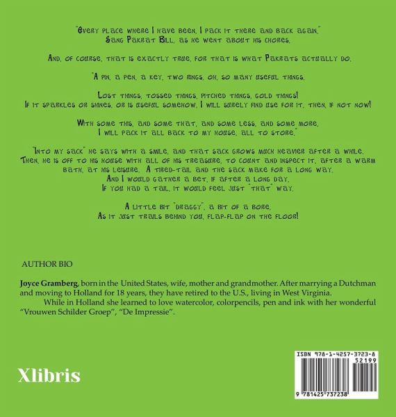 Pakrat Bill - Book Summary "Every place where I have been, I pack it there and back again." Sang Pakrat Bill, as he went about his chores. And, of course, that is exactly true, for that is what Pakrats actually do. "A pin, a pen, a key, two rings, oh, so many useful things. Lost things, tossed things, pitched things, gold things! If it sparkles or shines, or is useful somehow, I will surely find use for it, then, if not now! With some this, and some that, and some less, and some more, I will pack it all back to my house, all to store." "Into my sack" he says with a smile, and that sack grows much heavier after a while. Then, he is off to his house with all of his treasure, to count and inspect it, after a warm bath, at his leisure. A tired-tail and the sack make for a long way. And I would gather a bet, if after a long day, If you had a tail, it would feel just "that" way. A little bit "draggy", a bit of a bore, As it just trails behind you, flap-flap on the floor!