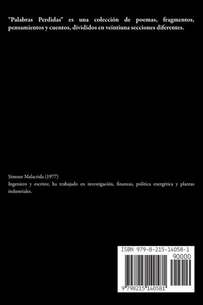 "Palabras Perdidas" es una colección de poemas, fragmentos, pensamientos y cuentos, divididos en veintiuna secciones diferentes.