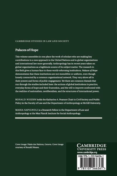This volume assembles in one place the work of scholars who are making key contributions to a new approach to the United Nations, and to global organizations and international law more generally. Anthropology has in recent years taken on global organizations as a legitimate source of its subject matter. The research that is being done in this field gives a human face to these world-reforming institutions. Palaces of Hope demonstrates that these institutions are not monolithic or uniform, even though loosely connected by a common organizational network. They vary above all in their powers and forms of public engagement. Yet there are common threads that run through the studies included here: the actions of global institutions in practice, everyday forms of hope and their frustration, and the will to improve confronted with the realities of nationalism, neoliberalism, and the structures of international power.