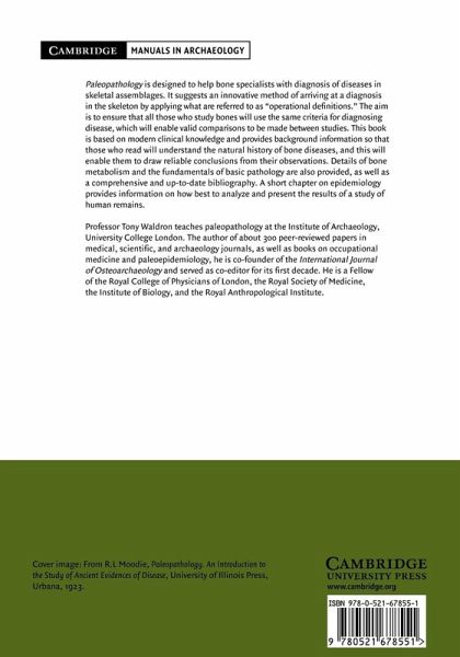 Palaeopathology is designed to help bone specialists with diagnosis of diseases in skeletal assemblages. Based on modern clinical knowledge Waldron provides background information to help readers understand the natural history of bone diseases, and draw reliable conclusions from their observations.