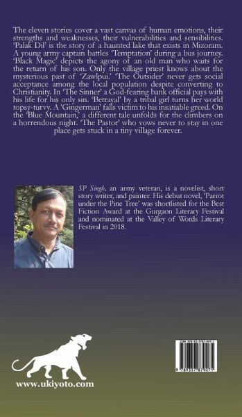 The eleven stories cover a vast canvas of human emotions, their strengths and weaknesses, their vulnerabilities and sensibilities. 'Palak Dil' is the story of a haunted lake that exists in Mizoram. A young army captain battles 'Temptation' during a bus journey. 'Black Magic' depicts the agony of an old man who waits for the return of his son. Only the village priest knows about the mysterious past of 'Zawlpui.' 'The Outsider' never gets social acceptance among the local population despite converting to Christianity. In 'The Sinner' a God-fearing bank official pays with his life for his only sin. 'Betrayal' by a tribal girl turns her world topsy-turvy. A 'Gingerman' falls victim to his insatiable greed. On the 'Blue Mountain,' a different tale unfolds for the climbers on a horrendous night. 'The Pastor' who vows never to stay in one place gets stuck in a tiny village forever.