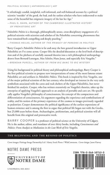 Using his background in political theory and philosophical anthropology, Barry Cooper is the first political scientist to propose new interpretations of some of the most famous extant Paleolithic art and artifacts in Paleolithic Politics. This book is inspired by Eric Voegelin, one of the major political scientists of the last century, who developed an interest in the very early symbolism associated with the caves and rock shelters of the Upper Paleolithic, but never finished his analysis. Cooper, who has written extensively on Voegelin's theories, takes up the enterprise of applying Voegelin's approach to an analysis of portable and cave art. He specifically applies Voegelin's philosophy of consciousness, his concept of the compactness and differentiation of consciousness, his argument regarding the experience and symbolizations of reality, and his notion of the primary experience of the cosmos to images previously regarded as pedestrian. Cooper demonstrates the political significance of the earliest expressions of human existence and is among the first to argue that political life began not with the Greeks, but 25,000 years before them. Archaeologists, prehistorians, and political scientists will all benefit from this original and provocative work.
