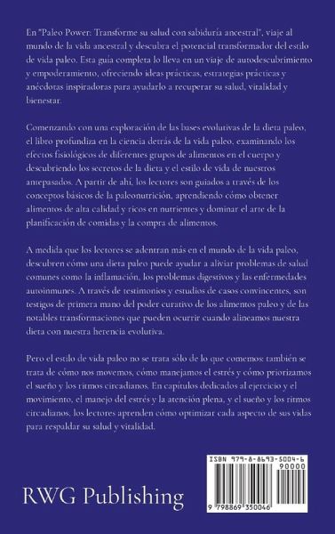 En "Paleo Power: Transforme su salud con sabiduría ancestral", viaje al mundo de la vida ancestral y descubra el potencial transformador del estilo de vida paleo. Esta guía completa lo lleva en un viaje de autodescubrimiento y empoderamiento, ofreciendo ideas prácticas, estrategias prácticas y anécdotas inspiradoras para ayudarlo a recuperar su salud, vitalidad y bienestar. Comenzando con una exploración de las bases evolutivas de la dieta paleo, el libro profundiza en la ciencia detrás de la vida paleo, examinando los efectos fisiológicos de diferentes grupos de alimentos en el cuerpo y descubriendo los secretos de la dieta y el estilo de vida de nuestros antepasados. A partir de ahí, los lectores son guiados a través de los conceptos básicos de la paleonutrición, aprendiendo cómo obtener alimentos de alta calidad y ricos en nutrientes y dominar el arte de la planificación de comidas y la compra de alimentos. A medida que los lectores se adentran más en el mundo de la vida paleo, descubren cómo una dieta paleo puede ayudar a aliviar problemas de salud comunes como la inflamación, los problemas digestivos y las enfermedades autoinmunes. A través de testimonios y estudios de casos convincentes, son testigos de primera mano del poder curativo de los alimentos paleo y de las notables transformaciones que pueden ocurrir cuando alineamos nuestra dieta con nuestra herencia evolutiva. Pero el estilo de vida paleo no se trata sólo de lo que comemos: también se trata de cómo nos movemos, cómo manejamos el estrés y cómo priorizamos el sueño y los ritmos circadianos. En capítulos dedicados al ejercicio y el movimiento, el manejo del estrés y la atención plena, y el sueño y los ritmos circadianos, los lectores aprenden cómo optimizar cada aspecto de sus vidas para respaldar su salud y vitalidad. A lo largo del libro, se anima a los lectores a emprender el viaje de autodescubrimiento y crecimiento que conlleva la adopción del estilo de vida paleo. Con consejos prácticos, anécdotas inspiradoras y estrategias prácticas, "Paleo Power" permite a los lectores recuperar su salud y vitalidad, paso a paso. Repleto de consejos prácticos, anécdotas inspiradoras y estrategias prácticas, "Paleo Power" es una lectura obligada para cualquiera que busque transformar su salud y bienestar a través de la sabiduría eterna de la vida ancestral. Ya sea que sea nuevo en paleo o un practicante experimentado, este libro lo inspirará a recuperar su salud, vitalidad y bienestar, y a embarcarse en un viaje de autodescubrimiento y empoderamiento que durará toda la vida.