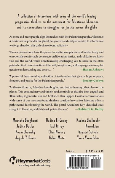 A collection of interviews with some of the world's leading progressive thinkers on the movement for Palestinian liberation and its connections to struggles for justice across the globe. As more and more people align themselves with the Palestinian people, Palestine in a World on Fire provides the global perspective and analysis needed to inform how we forge ahead on this path of newfound solidarity. Editors Ilan Pappé and Katherine Natanel have gathered a collection of interviews that are intimate, challenging, and rigorous-many of them conducted before October 7th but still startlingly prescient. The interviewees connect the struggle for Palestinian liberation to various liberatory movements around the world, simultaneously interrogating and recontextualizing their own positions given the ongoing aggression in Palestine. This incredible group includes Angela Y. Davis, Noam Chomsky, Judith Butler, Nadine El-Enany, Gabor Mate, Mustafa Barghouti, Yanis Varoufakis, Paul Gilroy, Elias Khoury, Gayatri Spivak, and Nadera Shalhoub-Kevorkian. Palestine in a World on Fire highlights the centrality of Palestine in struggles shared across the world: capitalism, imperialism, misogyny, neo-colonialism, racism, and more. Each conversation tackles urgent events and unfolding dynamics, and the scholar-activists interviewed here provide invaluable perspectives and insights, illuminating the richness and relevance of recent scholarship on Palestine.