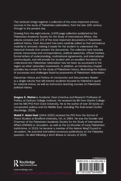 Palestinian History and Politics: An Introduction and Documentary Reader is a single volume that will interest students focused on Palestine's quest for national status, as well as instructors teaching courses on Palestinian political history.