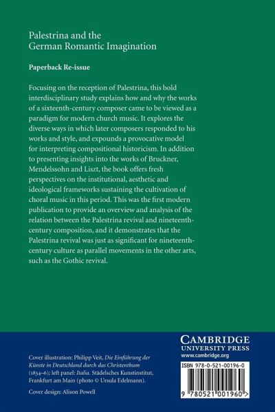 Focusing on the reception of Palestrina, this bold interdisciplinary study explains how and why the works of a sixteenth-century composer came to be viewed as a paradigm for modern church music. It explores the diverse ways in which later composers responded to his works and style, and expounds a provocative model for interpreting compositional historicism. In addition to presenting insights into the works of Bruckner, Mendelssohn and Liszt, the book offers fresh perspectives on the institutional, aesthetic and ideological frameworks sustaining the cultivation of choral music in this period. This publication provides an overview and analysis of the relation between the Palestrina revival and nineteenth-century composition and it demonstrates that the Palestrina revival was just as significant for nineteenth-century culture as parallel movements in the other arts, such as the Gothic revival.