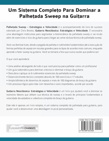 "Um sistema completo para dominar a palhetada sweep na guitarra Palhetada Sweep ¿ Estratégias e Velocidade é o acompanhamento do livro de sucesso estrelado por Chris Brooks, Guitarra Neoclássica: Estratégias e Velocidade. É necessária uma abordagem meticulosa para segmentar a biomecânica da palhetada sweep e vai muito além de exercícios e licks de guitarra para chegar ao cerne da boa técnica de palhetada sweep. Você vai dominar tudo, desde a pegada da palheta e rudimentos fundamentais até a execução de formas perfeitas de arpejo em escalas grandes para os tipos de acordes mais comuns, enquanto aprende a fazer sweep na guitarra. Você se tornará a fera que nunca soube que poderia ser! O que você aprenderá: ¿ Uma análise abrangente de tudo o que você precisa para palhetar como um profissional ¿ Um guia sistemático para dominar a técnica e dominar o braço da guitarra ¿ Descubra e aplique os 6 rudimentos essenciais da palhetada sweep ¿ Desenvolvimento técnico completo através de 100 exercícios e 17 estudos ¿ Ampla biblioteca de desenhos de arpejos e mais de 100 diagramas do braço da guitarra ¿ Um processo lógico para lidar com desenhos e sons importantes, acorde por acorde Guitarra Neoclássica: Estratégias e Velocidade é um livro que ajudará você a dominar os inúmeros fatores que afetam sua técnica de sweep e o levará de princípios fundamentais à velocidade devastadora e cobertura completa do braço da guitarra. Este não é apenas um livro simples, é um sistema completo de palhetada para guitarra, para ajudar você a desenvolver uma abordagem musical personalizada."