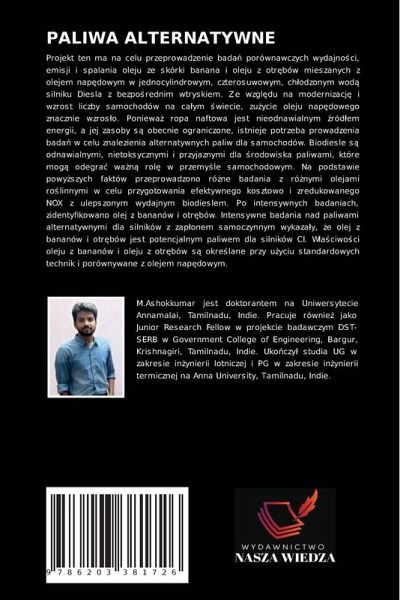 Projekt ten ma na celu przeprowadzenie badä porównawczych wydajno¿ci, emisji i spalania oleju ze skórki banana i oleju z otr¿bów mieszanych z olejem nap¿dowym w jednocylindrowym, czterosuwowym, ch¿odzonym wod¿ silniku Diesla z bezpo¿rednim wtryskiem. Ze wzgl¿du na modernizacj¿ i wzrost liczby samochodów na cäym ¿wiecie, zu¿ycie oleju nap¿dowego znacznie wzros¿o. Poniewä ropa naftowa jest nieodnawialnym ¿ród¿em energii, a jej zasoby s¿ obecnie ograniczone, istnieje potrzeba prowadzenia badä w celu znalezienia alternatywnych paliw dla samochodów. Biodiesle s¿ odnawialnymi, nietoksycznymi i przyjaznymi dla ¿rodowiska paliwami, które mog¿ odegrä wän¿ rol¿ w przemy¿le samochodowym. Na podstawie powy¿szych faktów przeprowadzono ró¿ne badania z ró¿nymi olejami ro¿linnymi w celu przygotowania efektywnego kosztowo i zredukowanego NOX z ulepszonym wydajnym biodieslem. Po intensywnych badaniach, zidentyfikowano olej z bananów i otr¿bów. Intensywne badania nad paliwami alternatywnymi dla silników z zap¿onem samoczynnym wykazäy, ¿e olej z bananów i otr¿bów jest potencjalnym paliwem dla silników CI. W¿äciwo¿ci oleju z bananów i oleju z otr¿bów s¿ okre¿lane przy u¿yciu standardowych technik i porównywane z olejem nap¿dowym.