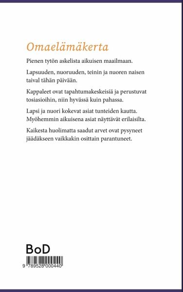 Pienen tytön askelista aikuisen maailmaan. Lapsuuden, nuoruuden, teinin ja nuoren naisen taival tähän päivään. Kappaleet ovat tapahtumakeskeisiä ja perustuvat tosiasioihin, niin hyvässä kuin pahassa. Lapsi ja nuori kokevat asiat tunteiden kautta. Myöhemmin aikuisena asiat näyttävät erilaisilta. Kaikesta huolimatta saadut arvet ovat pysyneet jäädäkseen vaikkakin osittain parantuneet.