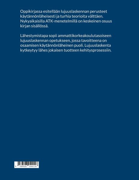 Oppikirjassa esitellään lujuuslaskennan perusteet käytännönläheisesti ja turhia teorioita välttäen. Nykyaikaisilla ATK-menetelmillä on keskeinen osuus kirjan sisällössä. Lähestymistapa sopii ammattikorkeakoulutasoiseen lujuuslaskennan opetukseen, jossa tavoitteena on osaamisen käytännönläheinen puoli. Lujuuslaskenta kytkeytyy lähes jokaisen tuotteen kehitysprosessiin.