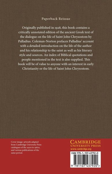 Originally published in 1928, this book contains a critically annotated edition of the ancient Greek text of the dialogue on the life of Saint John Chrysostom by Palladius. Coleman-Norton prefaces Palladius' account with a detailed introduction on the life of the author and his relationship to the saint as well as his literary style and sources. An index of biblical quotations and people mentioned in the text is also supplied. This book will be of value to anyone with an interest in early Christianity or the life of Saint John Chrysostom.