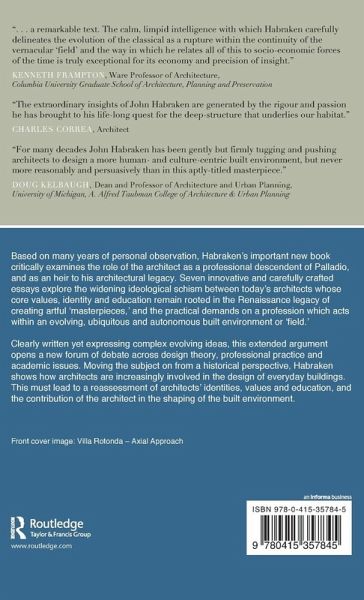 Based on many years of personal observation, Palladio's Children critically examines the role of the architect as a professional descendent of Palladio, and as an heir to his architectural legacy. Seven innovative and carefully crafted essays explore the widening ideological schism between today's architects whose core values, identity and education remain rooted in the Renaissance legacy of creating artful 'masterpieces', and the practical demands on a profession which acts within an evolving, ubiquitous and autonomous built environment or 'field'. Clearly written yet expressing complex, evolving ideas, this extended argument opens a new forum of debate across design theory, professional practice and academic issues. Moving the subject on from a historical perspective, Habraken shows how architects are increasingly involved in the design of everyday buildings. This must lead to a reassessment of architects' identities, values and education, and the contribution of the architect in the shaping of the built environment.