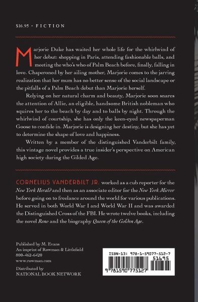 Marjorie Duke has waited her whole life for the whirlwind of her debut: shopping in Paris, attending fashionable balls, and meeting the Who's Who of Palm Beach before finally falling in love. Chaperoned by her ailing mother, Marjorie comes to the jarring realization that her mother, to whom she has looked for guidance her whole life, has no better sense of the social landscape and pitfalls of coming out than Marjorie herself. Relying on her natural charm and beauty, Marjorie soon snares the attention of Allie, an eligible handsome British nobleman who squires her to the beach by day and to balls by night. Through the whirlwind of courtship, she has only the keen-eyed newspaperman Goose to confide in. Marjorie is designing her destiny, but she has yet to determine the shape of love and happiness.