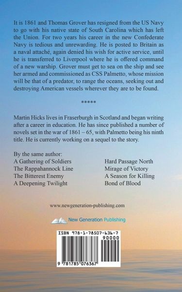 It is 1861 and Thomas Grover has resigned from the US Navy to go with his native state of South Carolina which has left the Union. For two years his career in the new Confederate Navy is tedious and unrewarding. He is posted to Britain as a naval attaché, again denied his wish for active service, until he is transferred to Liverpool where he is offered command of a new warship. Grover must get to sea on the ship and see her armed and commissioned as CSS Palmetto, whose mission will be that of a predator, to range the oceans, seeking out and destroying American vessels wherever they are to be found.