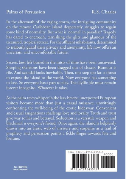 In the aftermath of the raging storm, the intriguing community on the remote Caribbean island desperately struggles to regain some kind of normality. But what is 'normal' in paradise? Tragedy has dared to encroach, tarnishing the glamour of the treasured, tropical hideaway. Life now offers an uncertain and uncomfortable future. Secrets best left buried in the mists of time have been uncovered. Sleeping skeletons have been dragged out of closets. Rumour is rife. And scandal looks inevitable. Then, one step too far: a threat to expose the island to the world. As the palm trees whisper in the lazy breeze, unexpected European visitors become more than just a casual nuisance, unwittingly confronting the well-being of the exotic hideaway. Convenient and casual assignations challenge love and loyalty. Truth and trust give way to lies and betrayal. Seduction is a versatile weapon and blackmail is everyone's friend. Once again, the island is helplessly drawn into an erotic web of passion, mystery and suspense.