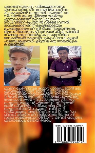 This Book In Malayalam language .After all, what was the truth of Palsa? It is a sin to commit crimes against living beings. How did 100 years of penance break? Why Lord Vishnu himself had to come in the form of a sadhu. Who will save their lives in danger to the lives of millions of animals. We will take you to the world of a fictional creator. Get Ready For Palsa : The Origin Of Life.. During Writing This Book No Character, No Religion & No Caste Are Harmed. This is a fictional author story written by Mr Vivek Kumar Pandey Shambhunath.