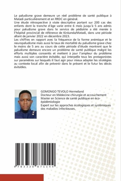 Le paludisme grave demeure un réel problème de santé publique à Matadi particulièrement et en RRDC en général.Une étude rétrospective à visée descriptive portant sur 200 cas des enfants dont la tranche d'âge varie entre 6 mois jusqu'à 5 ans admis pour paludisme grave dans le service de pédiatrie a été menée à l'hôpital provincial de référence de Kinkanda/Matadi, dans une période allant de janvier 2022 en décembre 2023.Les chiffres en rapport avec la fréquence de la forme anémique et le neuropaludisme mais aussi le taux de mortalité du paludisme grave chez le moins de 5 ans au cours de cette période d'étude montrent que le paludisme demeure encore un problème de santé publique malgré les efforts multiples consentis et mettent à jour l'ampleur du problème mais aussi son caractère évitable, qui interpelle tous les protagonistes sur paramètres sur lesquels il faut agir pour mieux adapter les stratégies au contexte local afin de prévenir dans le présent et le futur les décès évitables.