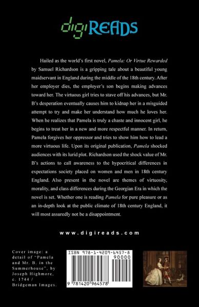 Hailed as the world’s first novel, "Pamela: Or Virtue Rewarded" by Samuel Richardson is a gripping tale about a beautiful young maidservant in England during the middle of the 18th century. After her employer dies, the employer’s son begins making advances toward her. The virtuous girl tries to stave off his advances, but Mr. B’s desperation eventually causes him to kidnap her in a misguided attempt to try and make her understand how much he loves her. When he realizes that Pamela is truly a chaste and innocent girl, he begins to treat her in a new and more respectful manner. In return, Pamela forgives her oppressor and tries to show him how to lead a more virtuous life. Upon its original publication, "Pamela" shocked audiences with its lurid plot. Richardson used the shock value of Mr. B’s actions to call awareness to the hypocritical differences in expectations society placed on women and men in 18th century England. Also present in the novel are themes of virtuosity, morality, and class differences during the Georgian Era in which the novel is set. Whether one is reading "Pamela" for pure pleasure or as an in-depth look at the public climate of 18th century England, it will most assuredly not be a disappointment. This edition is printed on premium acid-free paper.