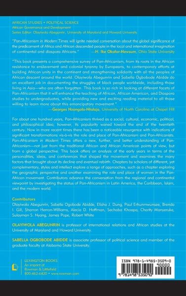 For about one hundred years, Pan-Africanism-as a social, cultural, economic, political, and philosophical idea-thrived. Towards the tail-end of the twentieth century, however, it waned. But in more recent times, there has been noticeable resurgence. And as we approach the second decade of the twenty-first century, there are indications of significant transformations vis-à-vis the role and place of Pan-Africanism and Pan-Africanists. Consequently, this book offers a new, further, and better understanding of Pan-Africanism-not just from the traditional, African, and African American points of view, but also from a global perspective. It does so by offering an analysis of its early years in terms of the personalities, ideas, and conferences that shaped it; it also examines many of the factors that brought about its decline-and its eventual rebirth. Contributing to this seminal work are scholars of different but complementary styles and intellect, who deviate from the more traditional or obvious approaches. For instance, one of the chapters explores Pan-Africanism from the geographic perspective, while another examines the role and place of women in the Pan-African movement. There are also voices that advance the conversation from the regional and continental viewpoint-hence chapters that investigate the status of Pan-Africanism in Latin America, in the Caribbean, and Islam and Pan-Africanism in the modern world. Ethnonationalism and xenophobia are also part of the treatise because, increasingly, these injurious phenomena are reemerging in Africa's landscape and consciousness. In an increasingly interdependent and interrelated world, this book also suggests that Pan-Africanism will undergo a metamorphosis: problems and challenges will be seen and tackled from the globalization and global common perspective. Pan-Africanism in Modern Times goes beyond the historicity of Pan-Africanism and examines the challenges, concerns, and constraints it faces; and also examines it from an inclusive perspective to have a broader understanding of this phenomenon and its future trajectory.