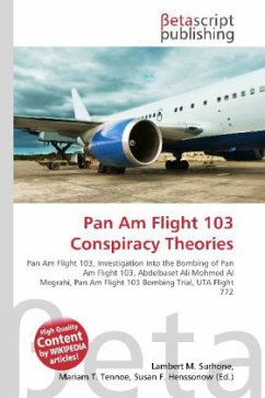Please note that the content of this book primarily consists of articles available from Wikipedia or other free sources online.Pan Am Flight 103 conspiracy theories suggest a number of alternative explanations for the bombing of Pan Am Flight 103 on 21 December 1988. Some of the theories preceded the official investigation by Scottish police and the FBI; others arose through a different interpretation of evidence presented at Libyan agent Abdelbaset Ali Mohmed Al Megrahi''s 2000/2001 trial; yet others have been developed independently by individuals and organisations outside the official investigation.