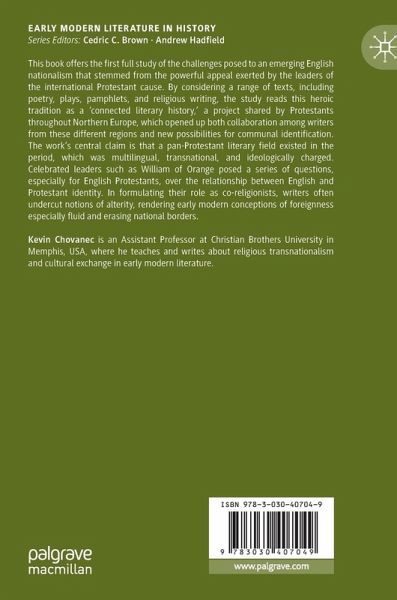This book offers the first full study of the challenges posed to an emerging English nationalism that stemmed from the powerful appeal exerted by the leaders of the international Protestant cause. By considering a range of texts, including poetry, plays, pamphlets, and religious writing, the study reads this heroic tradition as a 'connected literary history,' a project shared by Protestants throughout Northern Europe, which opened up both collaboration among writers from these different regions and new possibilities for communal identification. The work's central claim is that a pan-Protestant literary field existed in the period, which was multilingual, transnational, and ideologically charged. Celebrated leaders such as William of Orange posed a series of questions, especially for English Protestants, over the relationship between English and Protestant identity. In formulating their role as co-religionists, writers often undercut notions of alterity, rendering early modern conceptions of foreignness especially fluid and erasing national borders.