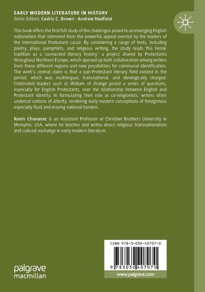 This book offers the first full study of the challenges posed to an emerging English nationalism that stemmed from the powerful appeal exerted by the leaders of the international Protestant cause. By considering a range of texts, including poetry, plays, pamphlets, and religious writing, the study reads this heroic tradition as a 'connected literary history,' a project shared by Protestants throughout Northern Europe, which opened up both collaboration among writers from these different regions and new possibilities for communal identification. The work's central claim is that a pan-Protestant literary field existed in the period, which was multilingual, transnational, and ideologically charged. Celebrated leaders such as William of Orange posed a series of questions, especially for English Protestants, over the relationship between English and Protestant identity. In formulating their role as co-religionists, writers often undercut notions of alterity, rendering early modern conceptions of foreignness especially fluid and erasing national borders.