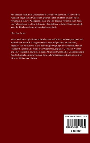 Erstdruck: Paris 1834 (2 Bde). Hier nach der Übers. v. Siegfried Lippiner. Originaltitel: Pan Tadeusz czyli ostatni zajazd na Litwie