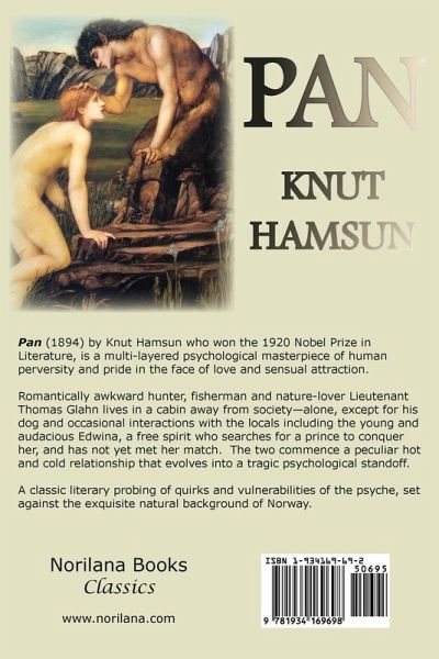 Pan (1894) by Knut Hamsun who won the 1920 Nobel Prize in Literature, is a multi-layered psychological masterpiece of human perversity and pride in the face of love and sensual attraction. Romantically awkward hunter, fisherman and nature-lover Lieutenant Thomas Glahn lives in a cabin away from society -- alone, except for his dog and occasional interactions with the locals including the young and audacious Edwina, a free spirit who searches for a prince to conquer her, and has not yet met her match. The two commence a peculiar hot and cold relationship that evolves into a tragic psychological standoff. A classic literary probing of quirks and vulnerabilities of the psyche, set against the exquisite natural background of Norway.