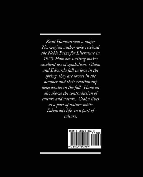Knut Hamsun was a major Norwegian author who received the Noble Prize for Literature in 1920. Hamsun writing makes excellent use of symbolism. Glahn and Edvarda fall in love in the spring, they are lovers in the summer and their relationship deteriorates in the fall. Hamsun also shows the contradiction of culture and nature. Glahn lives as a part of nature while Edvarda's life in a part of culture.