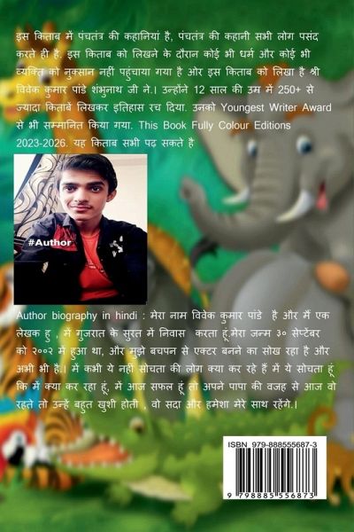 This book contains the stories of Panchatantra, everyone likes the story of Panchatantra, this book can be read by all. No religion and no person has been harmed while writing this book and this book has been written by Mr Vivek Kumar Pandey Shambhunath ji.. At the age of 12, he created history by writing more than 250+ books. He was also awarded with the Youngest Writer Award year 2021 at gujarat. 2023-2027 Latest Edition Book.This Book Fully Colour Edition.