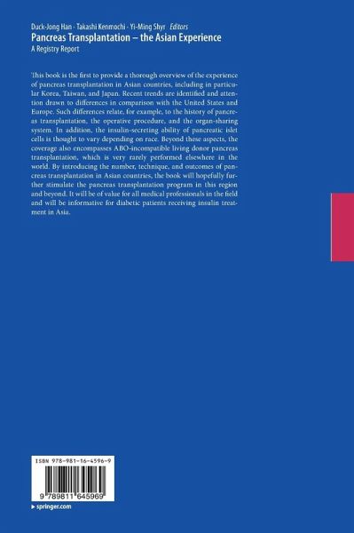 This book is the first to provide a thorough overview of the experience of pancreas transplantation in Asian countries, including in particular Korea, Taiwan, and Japan. Recent trends are identified and attention drawn to differences in comparison with the United States and Europe. Such differences relate, for example, to the history of pancreas transplantation, the operative procedure, and the organ-sharing system. In addition, the insulin-secreting ability of pancreatic islet cells is thought to vary depending on race. Beyond these aspects, the coverage also encompasses ABO-incompatible living donor pancreas transplantation, which is very rarely performed elsewhere in the world. By introducing the number, technique, and outcomes of pancreas transplantation in Asian countries, the book will hopefully further stimulate the pancreas transplantation program in this region and beyond. It will be of value for all medical professionals in the field and will be informative for diabetic patients receiving insulin treatment in Asia.
