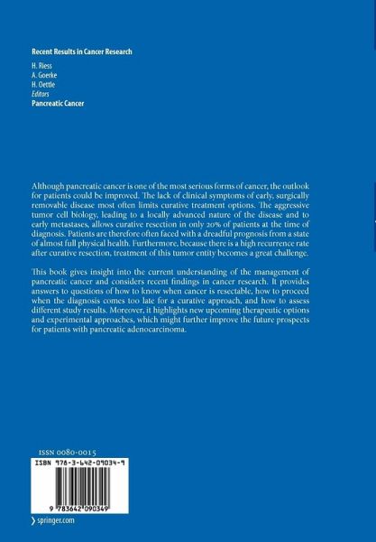 Although pancreatic cancer is one of the most serious forms of cancers, the outlook for patients could be improved. The lack of clinical symptoms of early, surgically removable disease most often limits curative treatment options. The aggressive tumor cell biology, leading to a locally advanced nature of the disease and to early metastases, allows curative resection in only 20% of patients at the time of diagnosis. This book gives insight into the current understanding of the management of pancreatic cancer and considers recent findings in cancer research. It provides answers to questions of how to know when cancer is respectable, how to proceed when the diagnosis comes too late for a curative approach, and how to assess different study results. Moreover, it highlights new upcoming therapeutic options and experimental approaches, which might further improve the future prospects for patients with pancreatic adenocarcinoma.